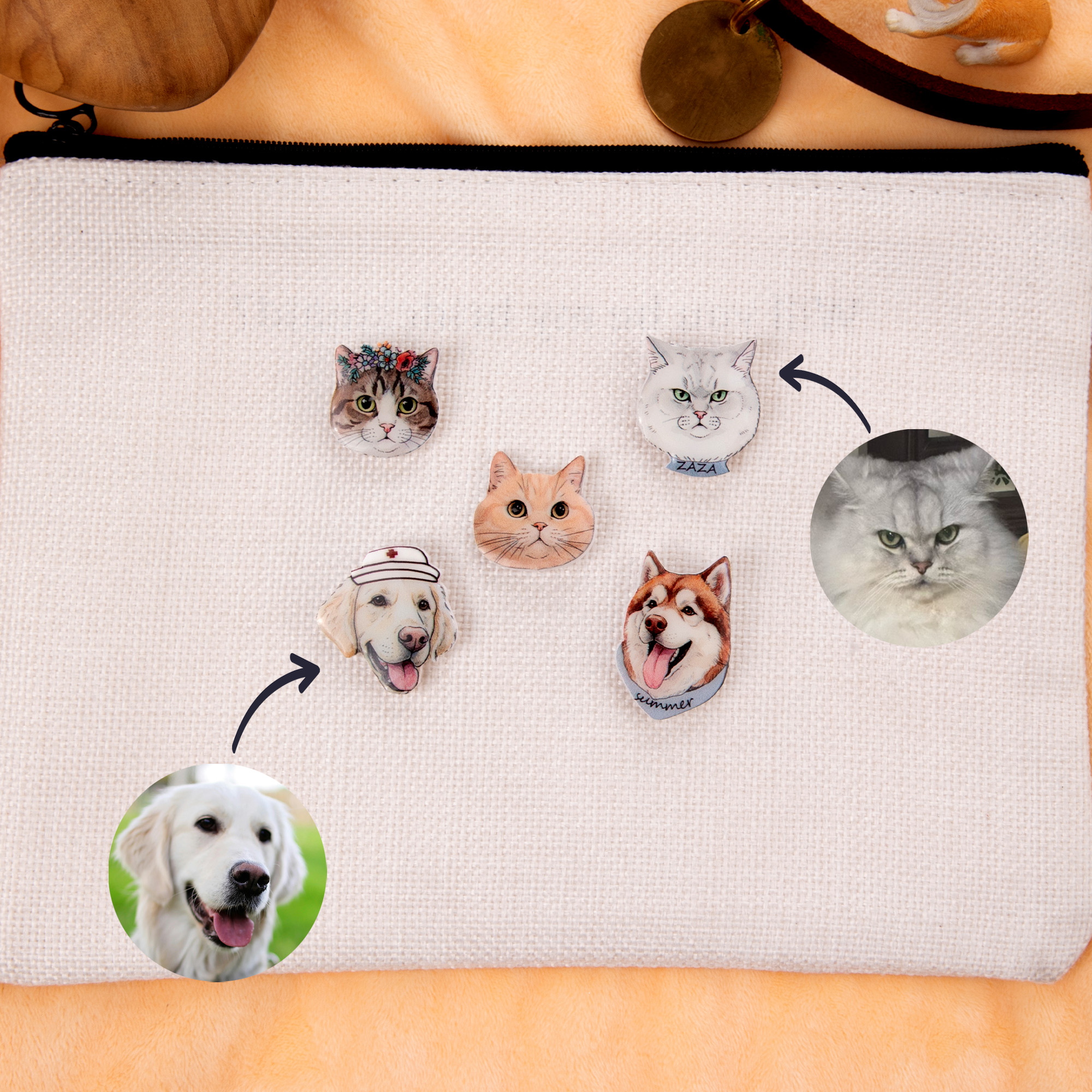 Crafted with attention to detail, this wearable art piece can be attached to jackets, hats, or tote bags, adding a fun and unique touch to any outfit. Its versatility makes it an ideal accessory for everyday wear or special occasions, allowing pet lovers to showcase their passion for their pets in a stylish way.